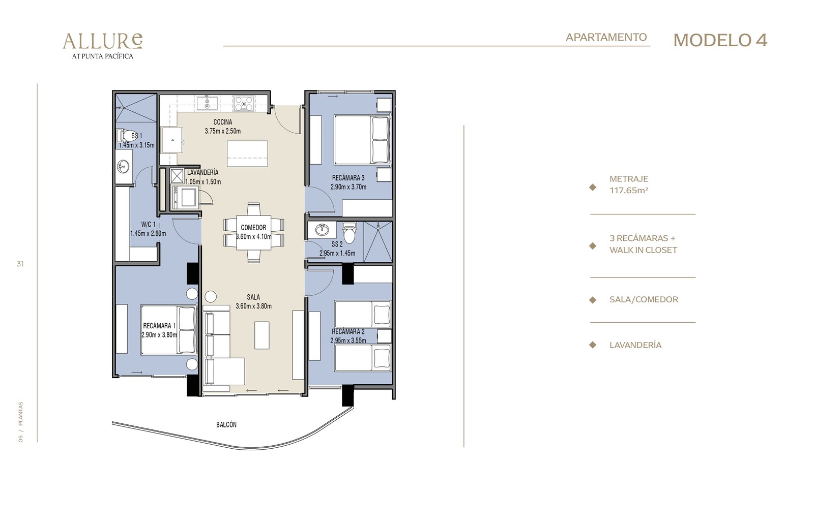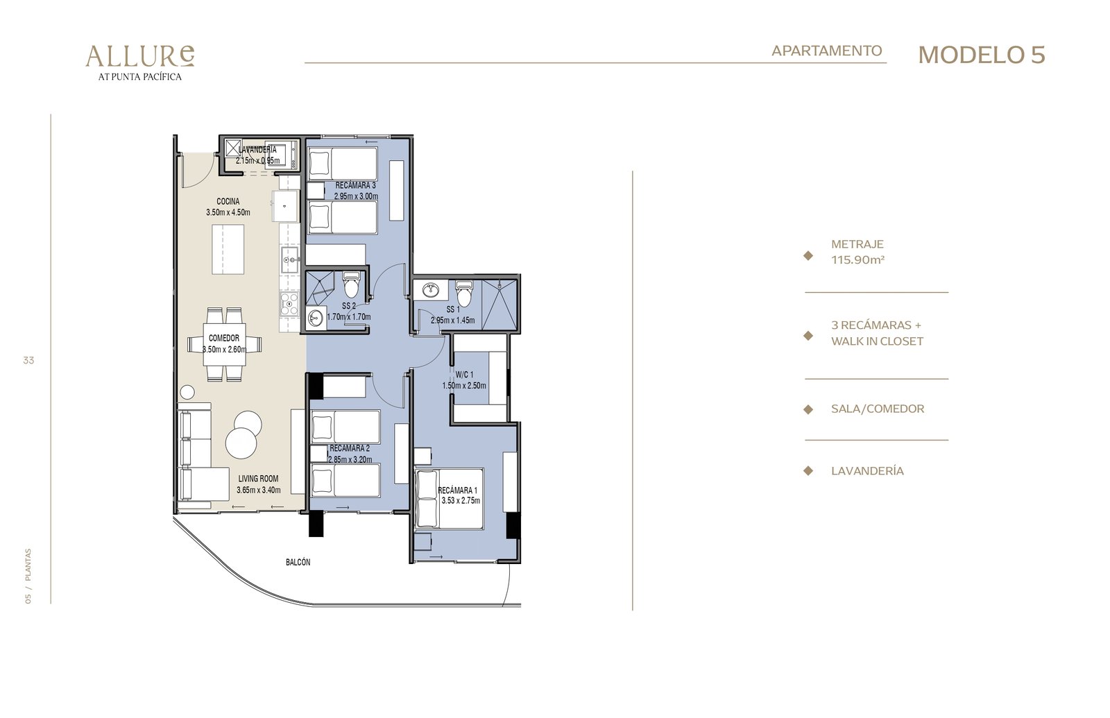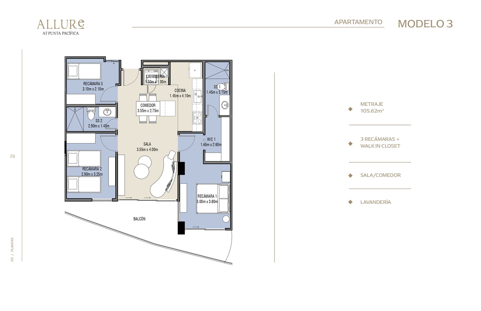 - Balcones amplios con vistas al entorno urbano y/o Océano Pacífico