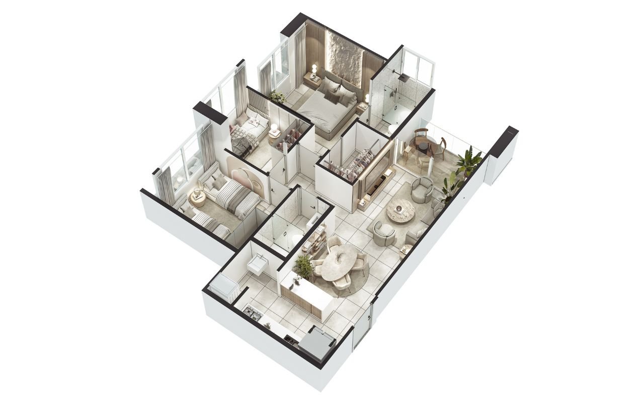 • Cuarto y baño de servicio (en modelos 3 habitaciones)