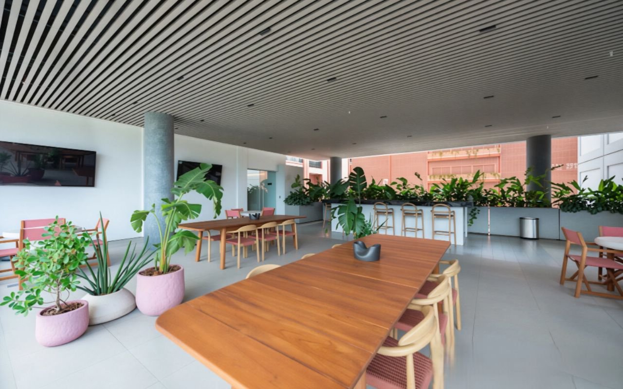 - Diseño arquitectónico moderno integrado al entorno comunitario