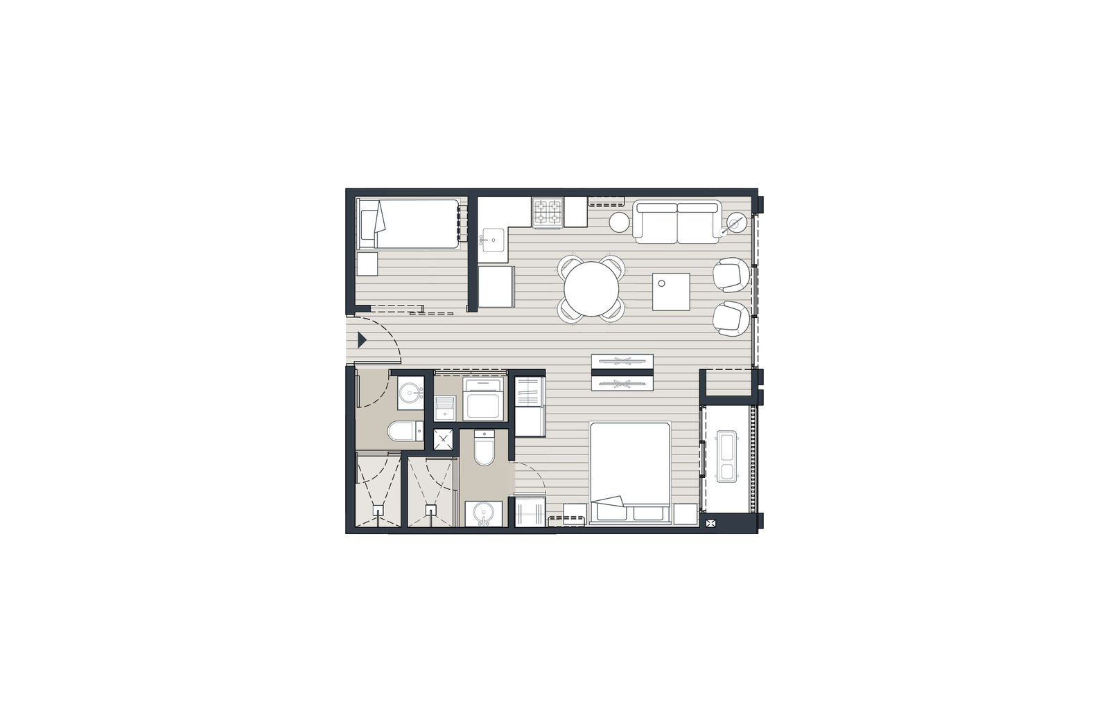 - Modelos tipo lock-off con baño y kitchenette independientes