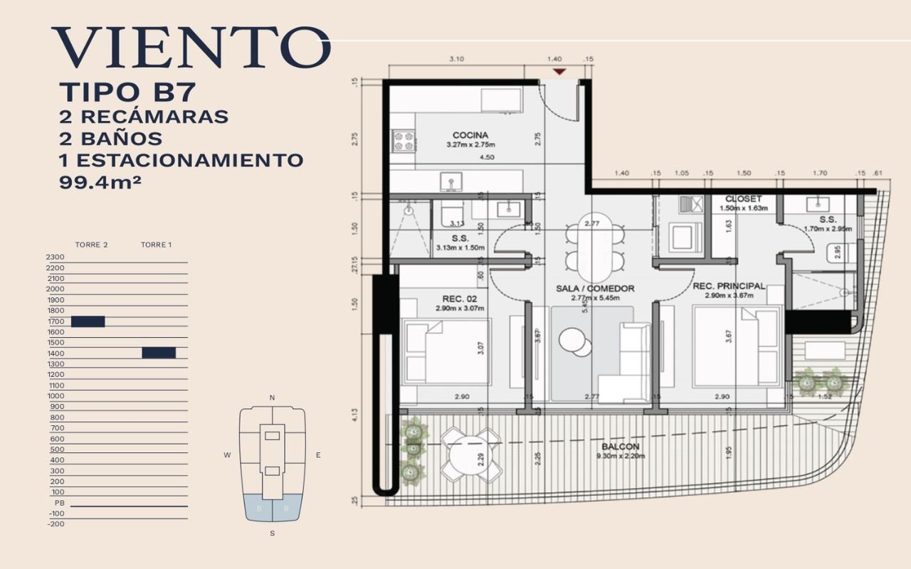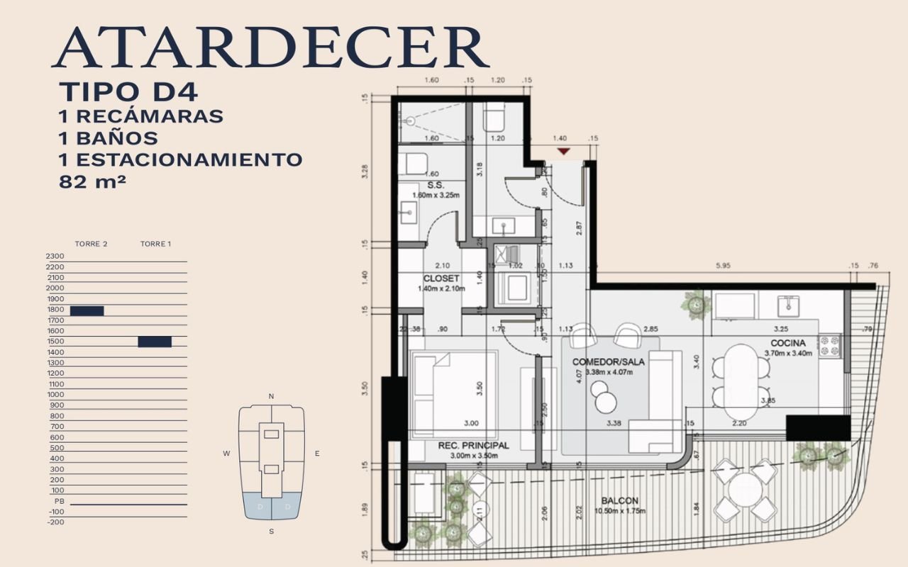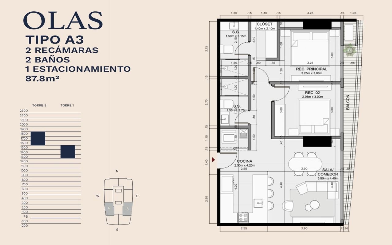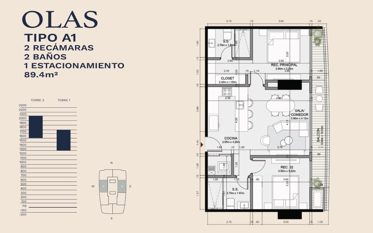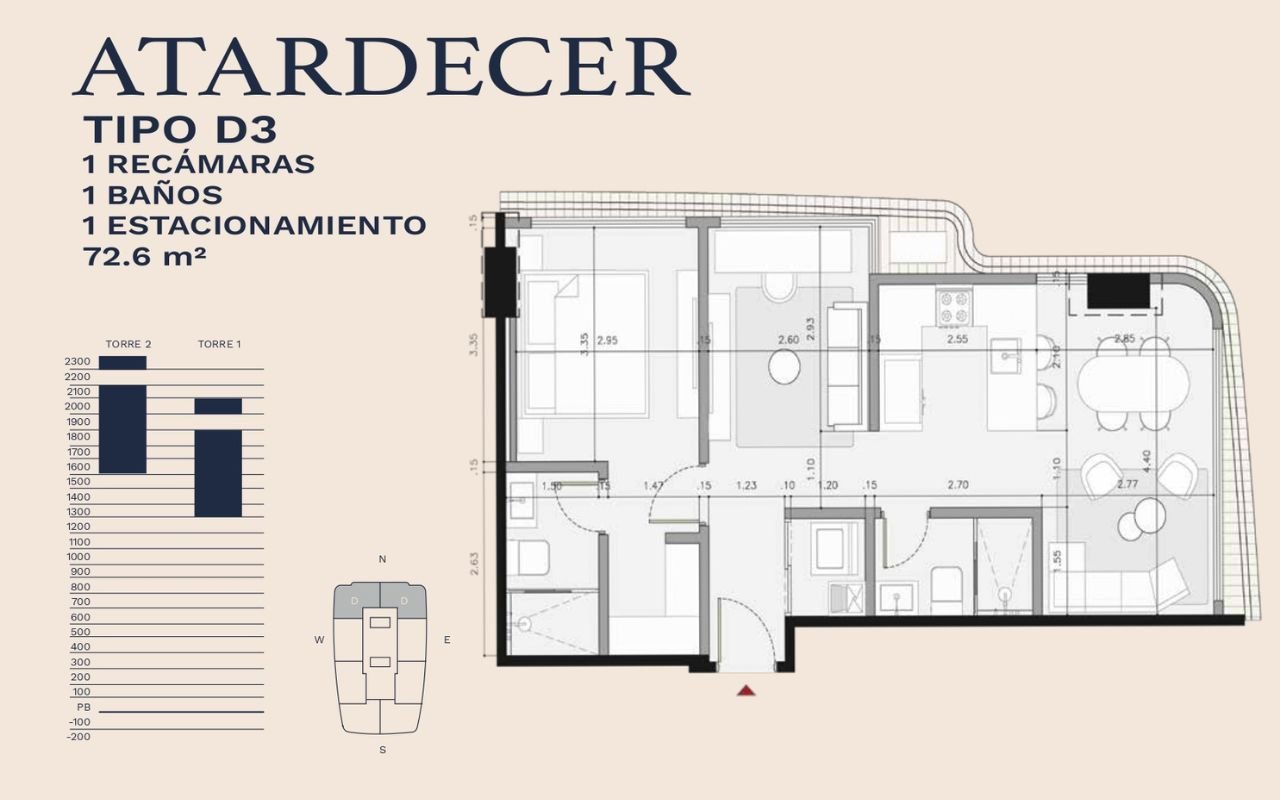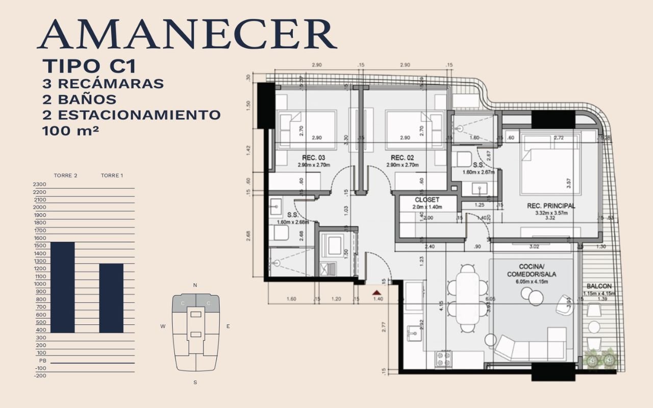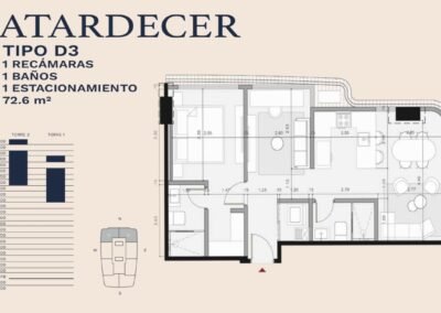 • Tipologías: 1, 2 y 3 dormitorios