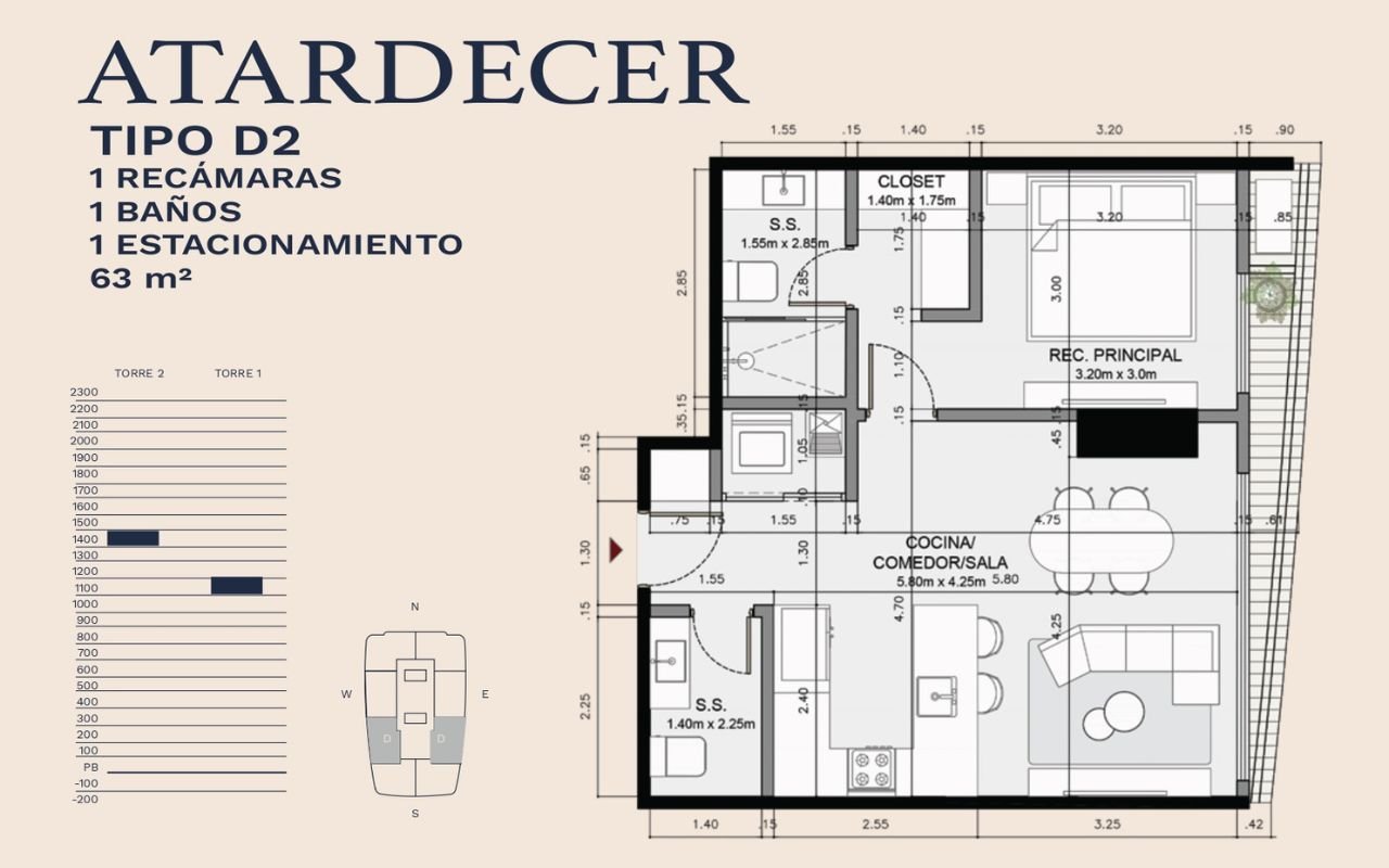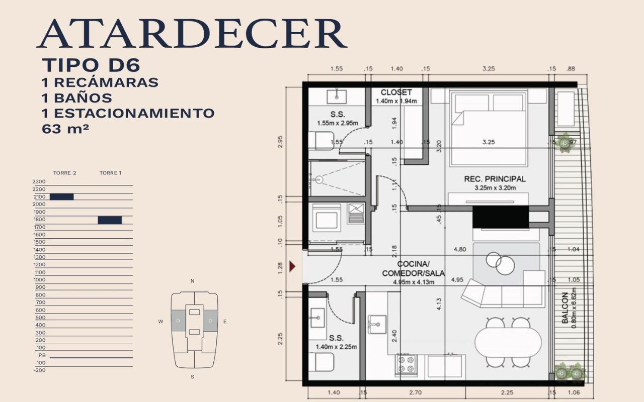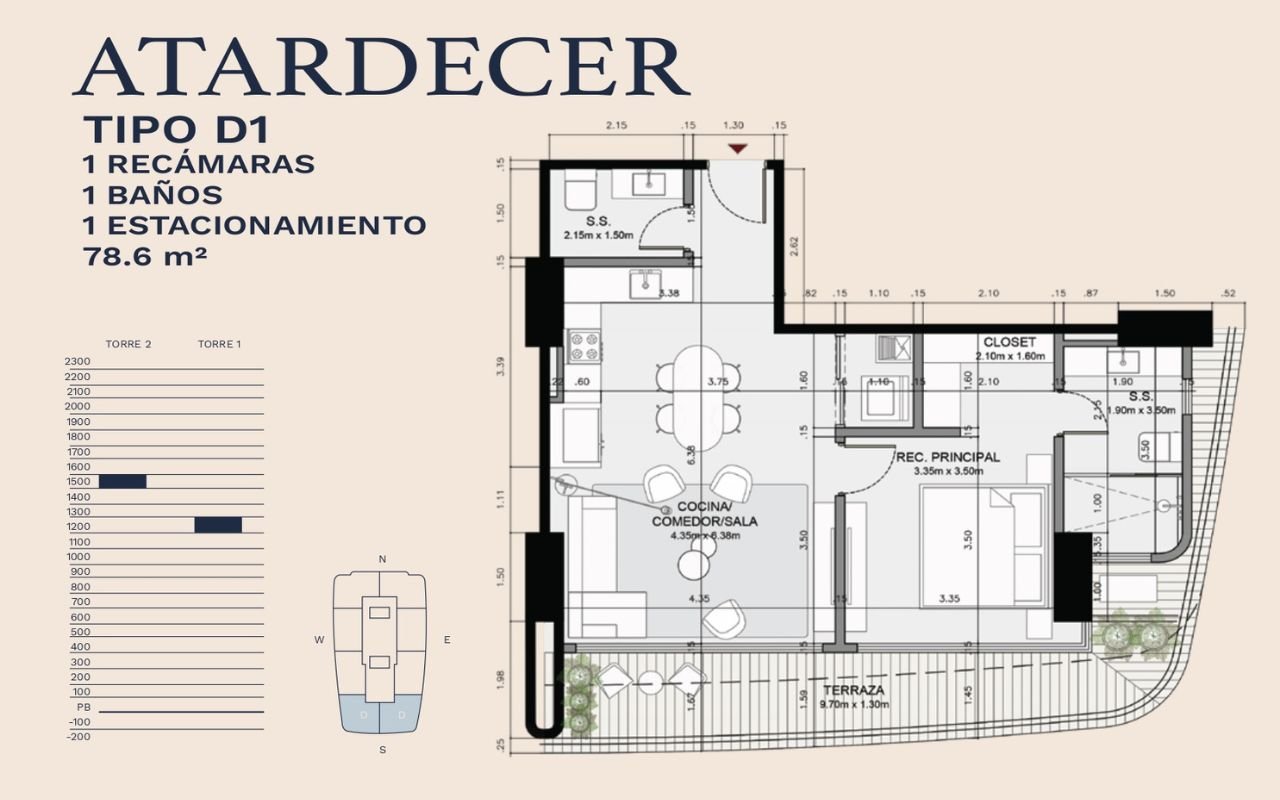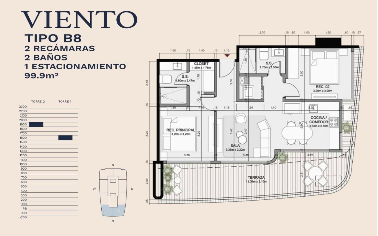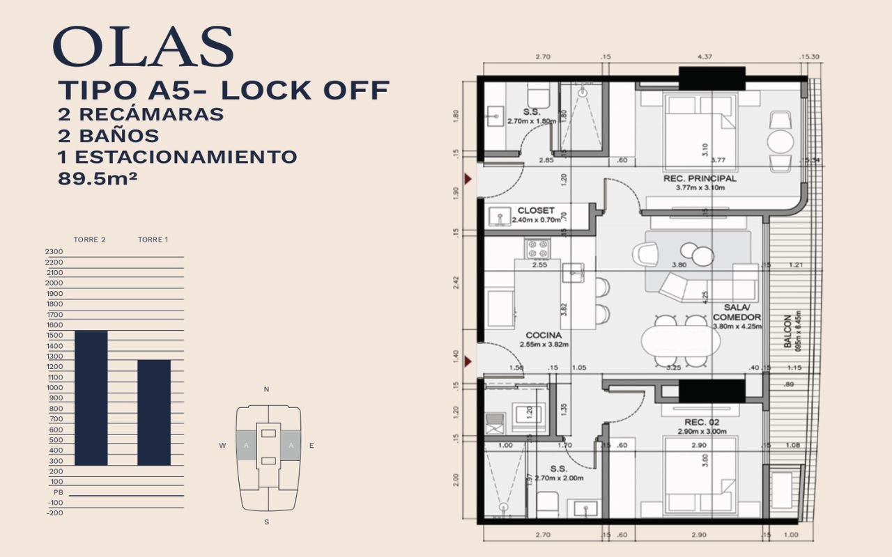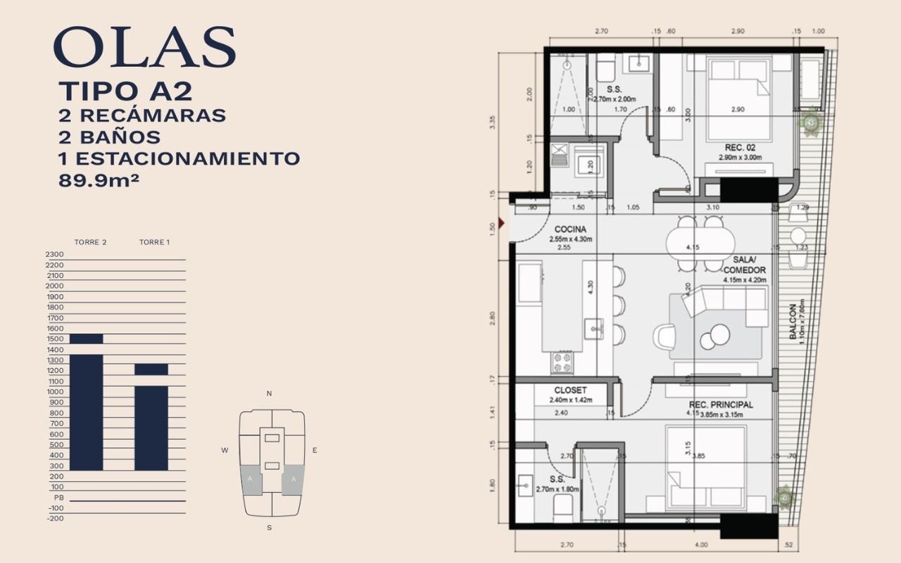 • Tipologías: 1, 2 y 3 dormitorios