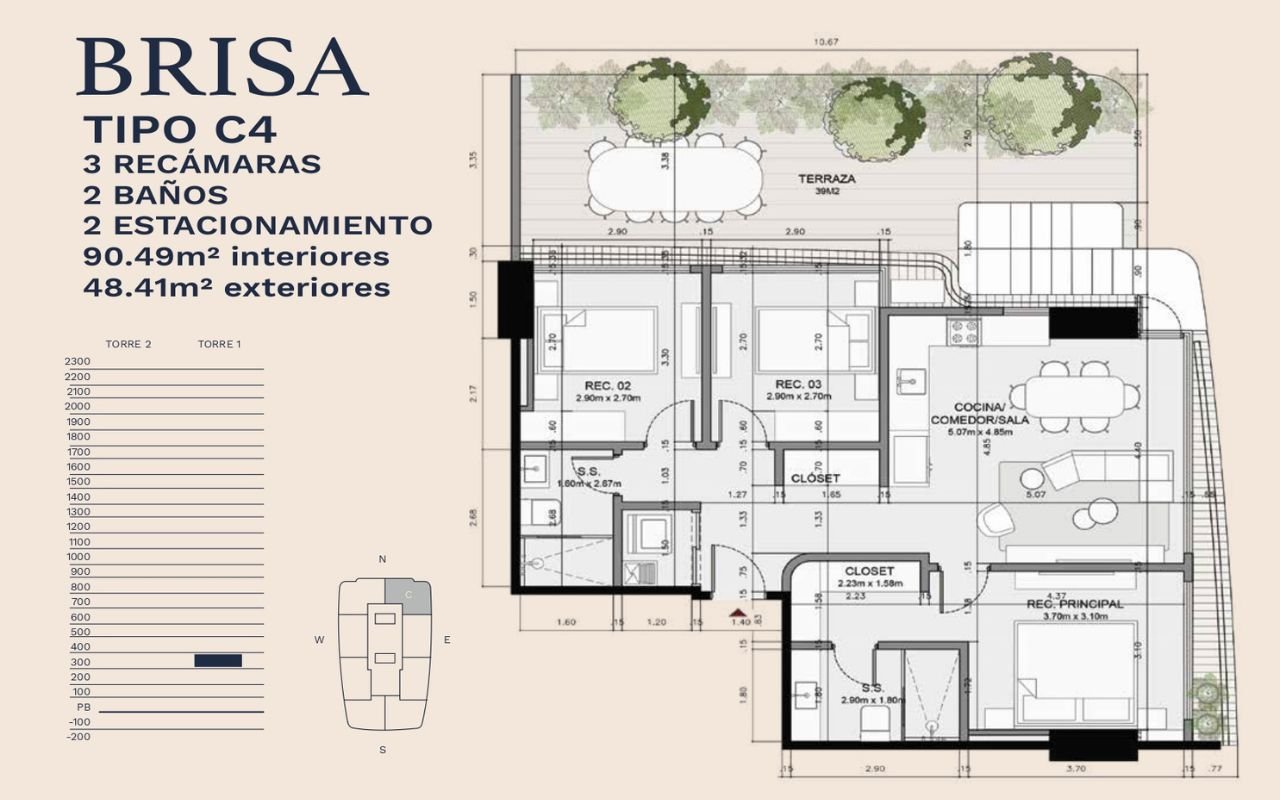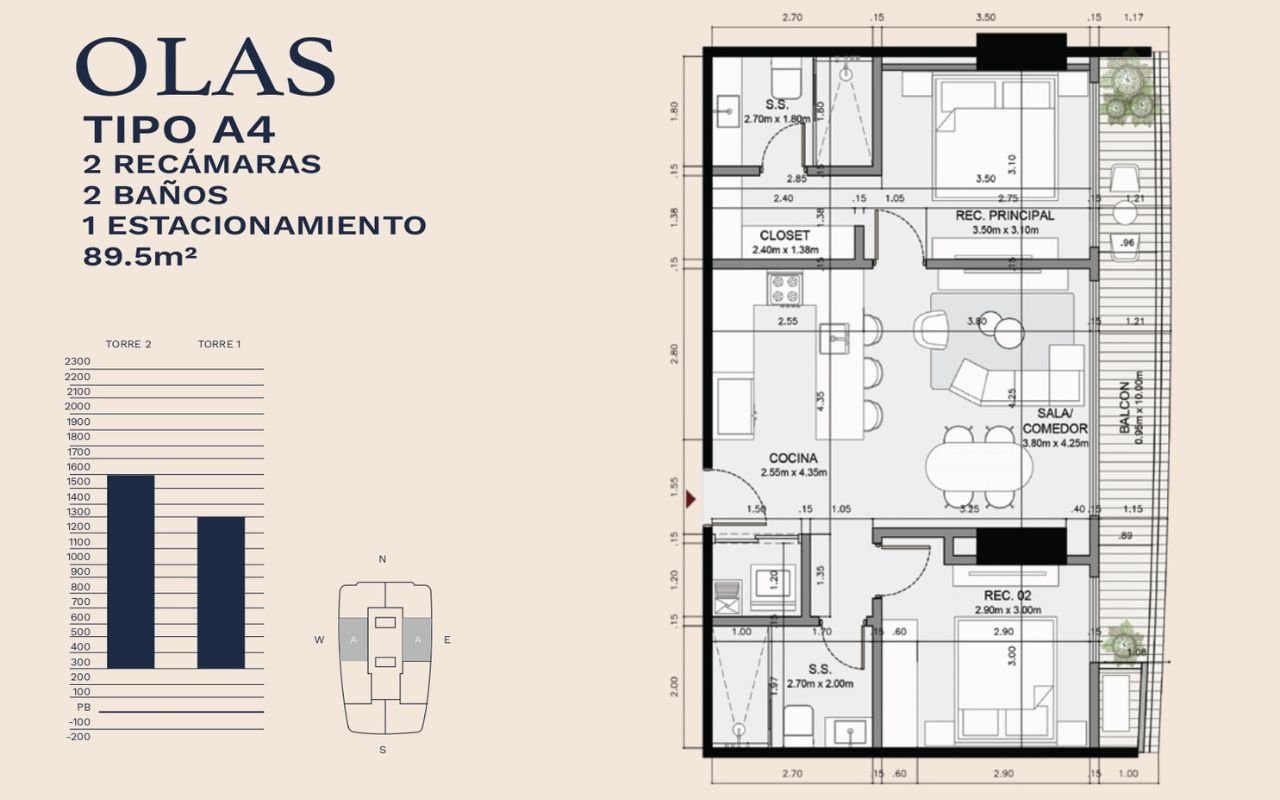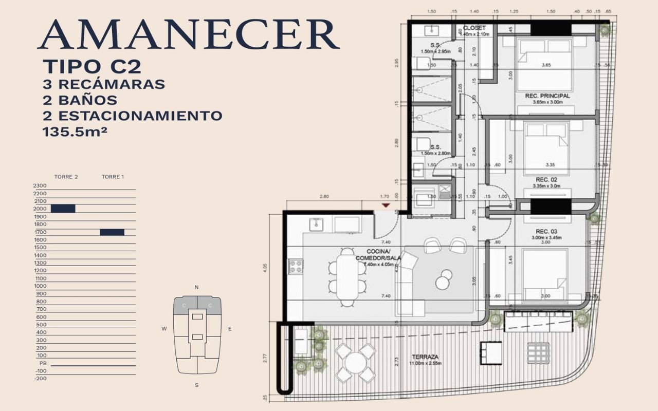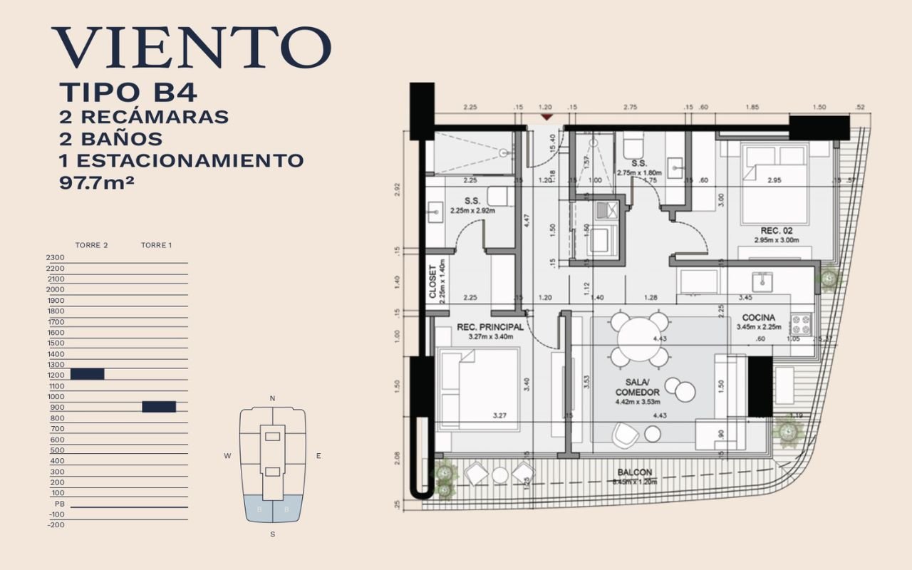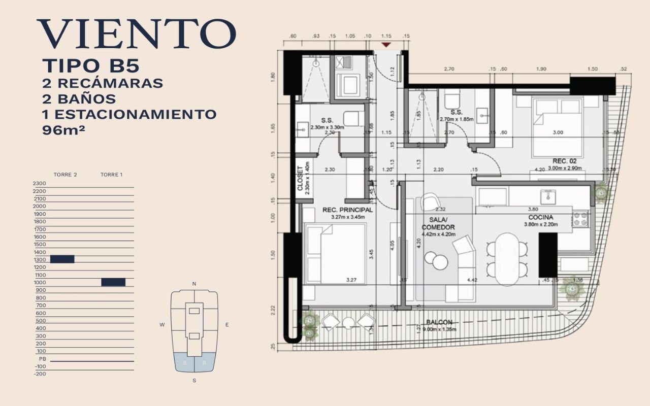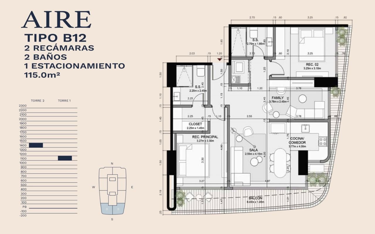 • Tipologías: 1, 2 y 3 dormitorios