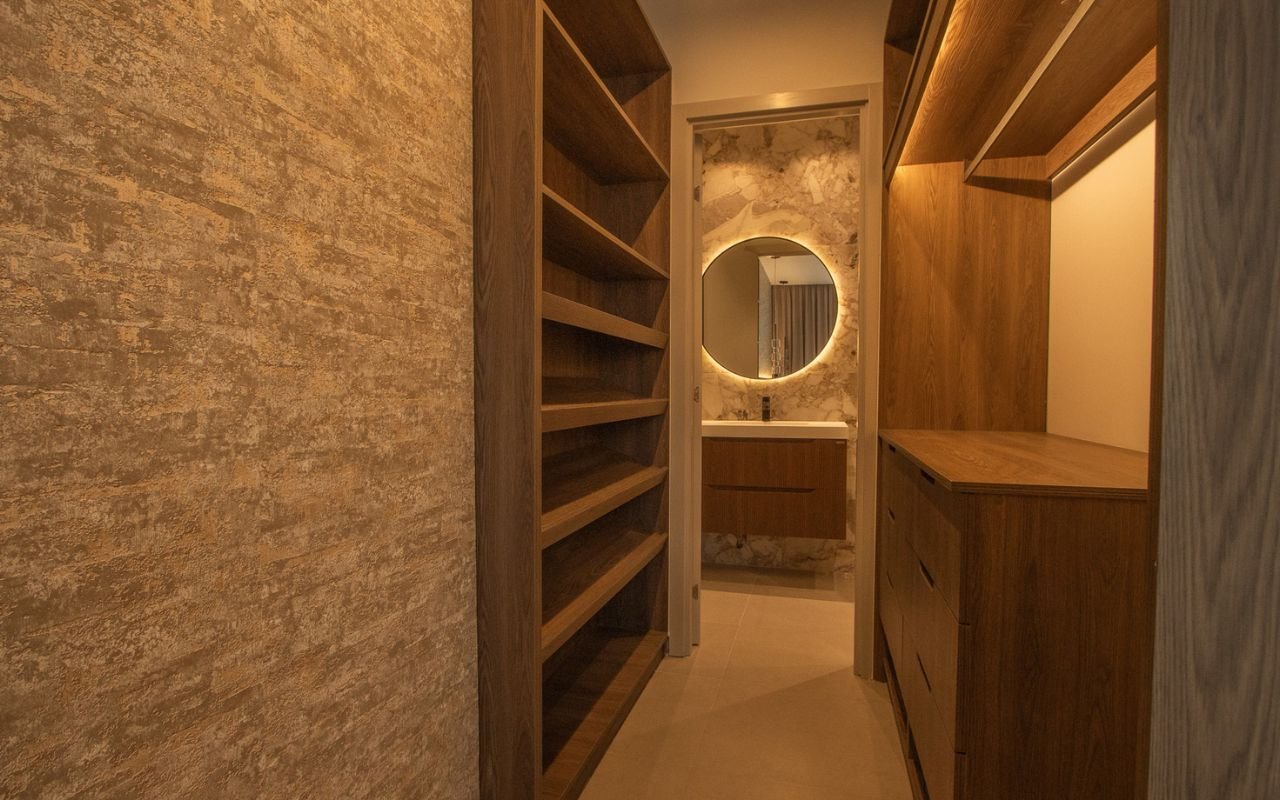 - Walk-in closet en recámara principal (modelo 64 m²)