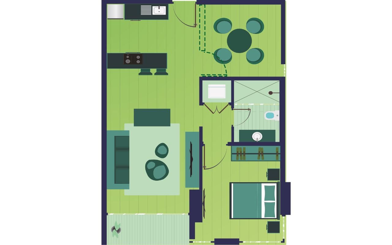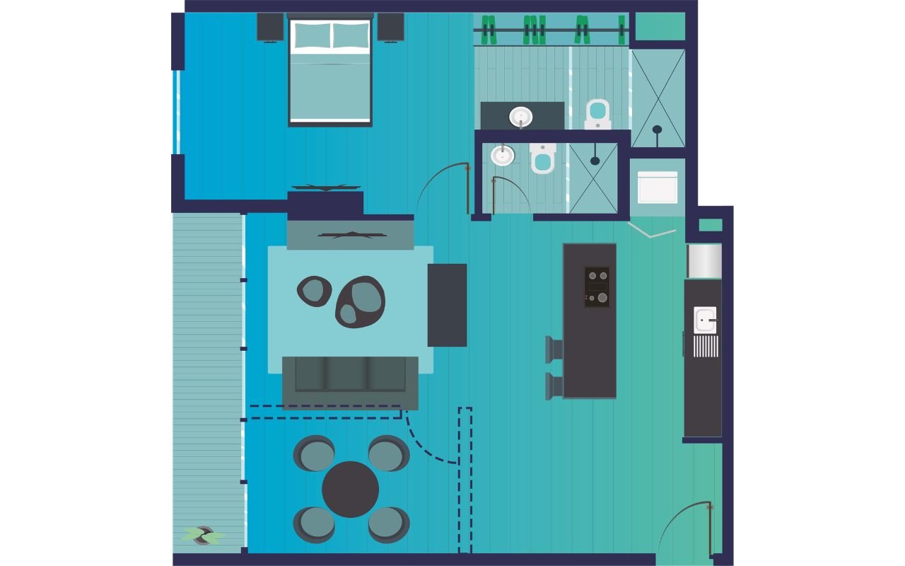 - Línea blanca completa: aire acondicionado VRF, lavadora en torre, nevera y estufa