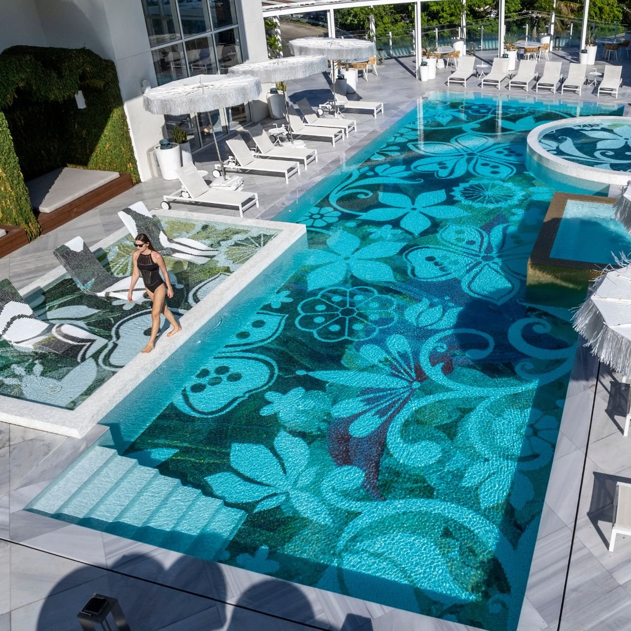 • Piscina con diseño artístico exclusivo de Marcel Wanders, con patrón de azulejos inspirado en la flora panameña