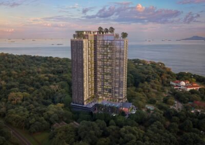 - Vistas panorámicas al mar, al bosque tropical o a ambos, según orientación y piso