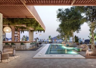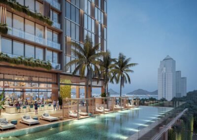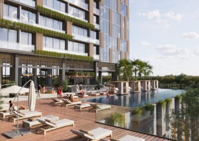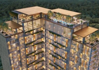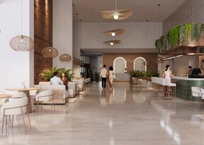 - Áreas sociales vibrantes: lounges, salas de eventos, salas de reuniones, cine privado